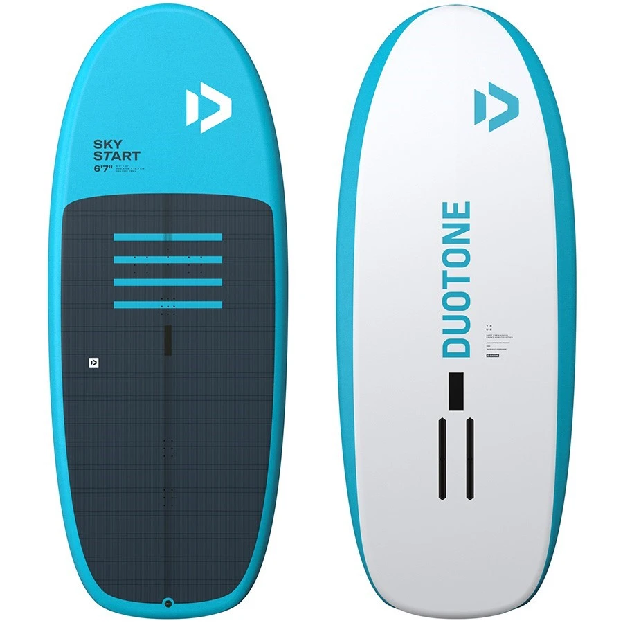 With a length of 6’7″, 31 inches of width and a volume of 155L, the completely new outline of the Sky Start offers a very stable and safe platform for those learning the basic steps from crawling onto the board to finding the right stance and their first take-off. For those riders being able to safely fly along and learning first gybes and tacks, the Sky Start is still compact enough for a great flying sensation to have fun and progress.