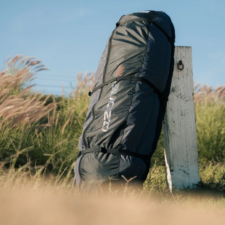 - The massive kite and clothing section has three compression straps outside to keep the bag cinched to a minimum size.