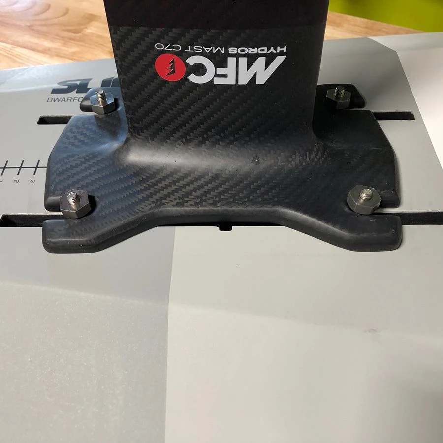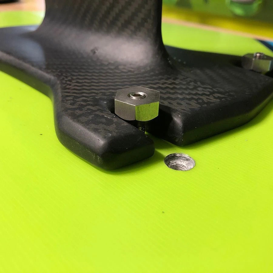 This hardware set will work with any base plate or 4-bolt tracked board on the market. This included M8 or M6 base plates and tracks. There is no more need for T-nuts or different sized bolts the Wizardhat will work on any. Also, the way the bolt sticks up through the track on top makes it easy to line up with the base plate.