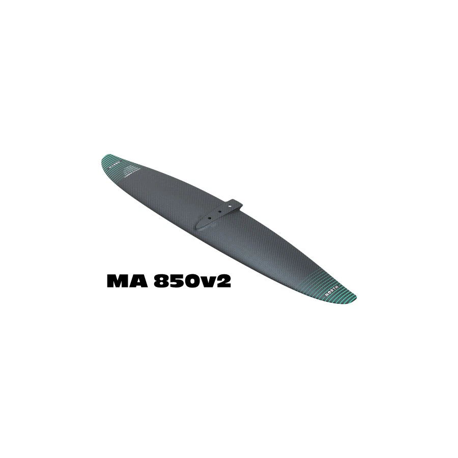 SONAR MA850v2: The MA850v2 Front Wing is a mid-aspect ratio wing ideal for lighter to average weight advanced wingfoilers or prone surfers, and kitefoilers. Very fast and extremely manoeuvrable, the airfoil section has been designed with more emphasis on top-speed over stall speed. The area and aspect ratio combination gives the MA850v2 excellent agility and efficient glide, provided speed is maintained. It retains a locked-in feel for upwind/powered riding.The MA850v2 is a fantastically versatile wing for an advanced rider looking for a wide speed range across multiple disciplines. Guaranteed ventilation-free tip-breaching, so you can really crank your turns.