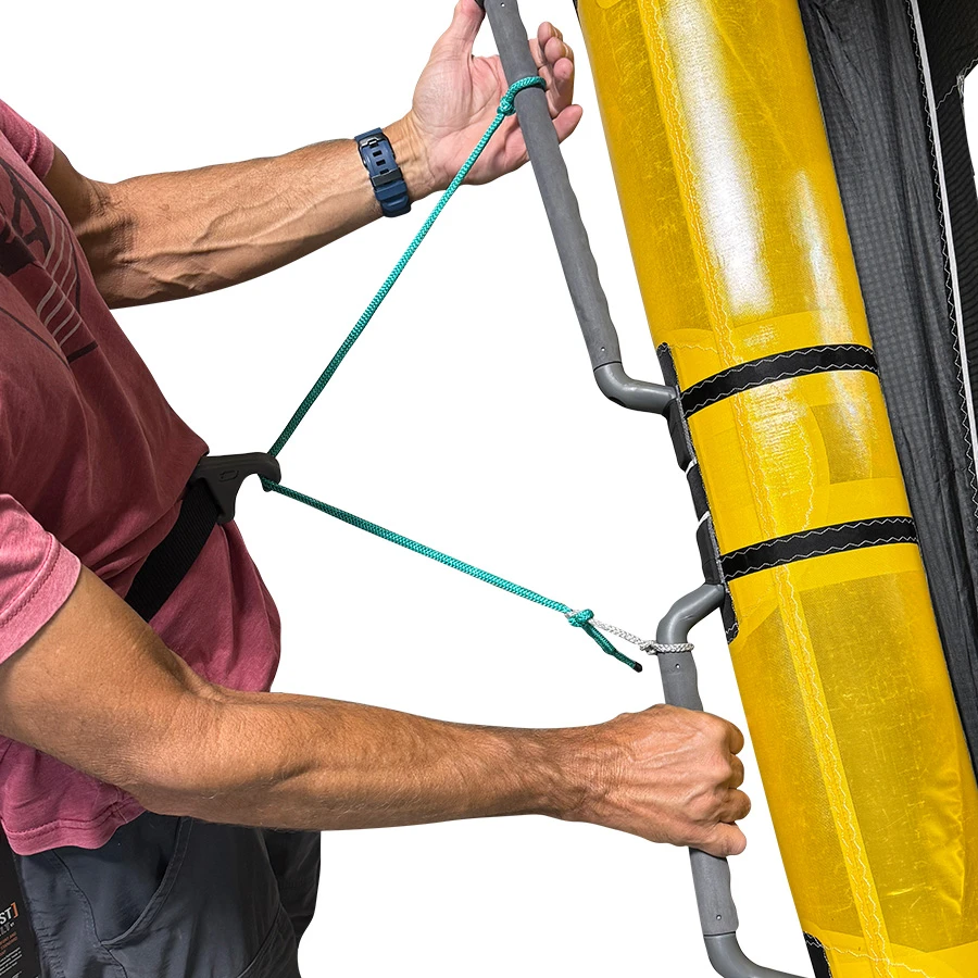 New from PKS is the LoPro Wing Harness Line. Specifically designed for a minimalist feel and function, the LoPro Harness line stays out of the way until you want to use it. Manufactured with 1/8″ spectra and a larger diameter shock cord bungee inside, the LoPro Harness Line has more than enough stretch for a very comfortable hooked in riding position, and enough tension to stay low profile and out of the way when you are not hooked in.Â