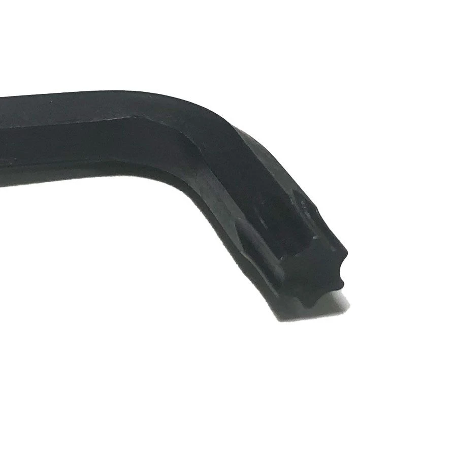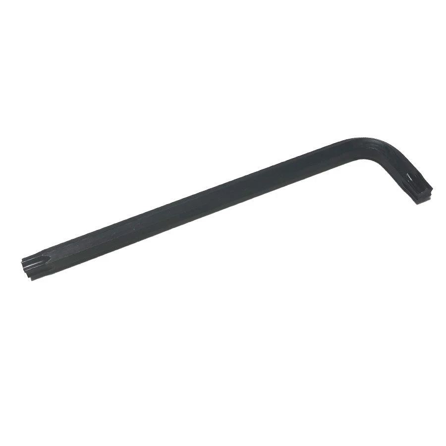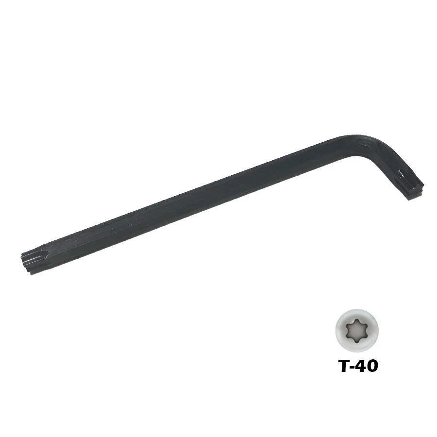 This L-shaped Torx key has a T-40 Torx tip at the end of each arm that can be inserted into the Torx indentation in the bolt or screw.