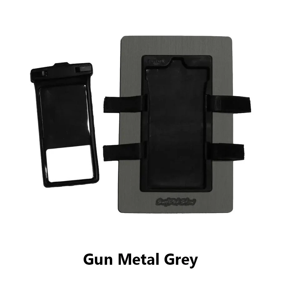 - Includes: waterproof phone case/pouch + adhesive tray with velcro.